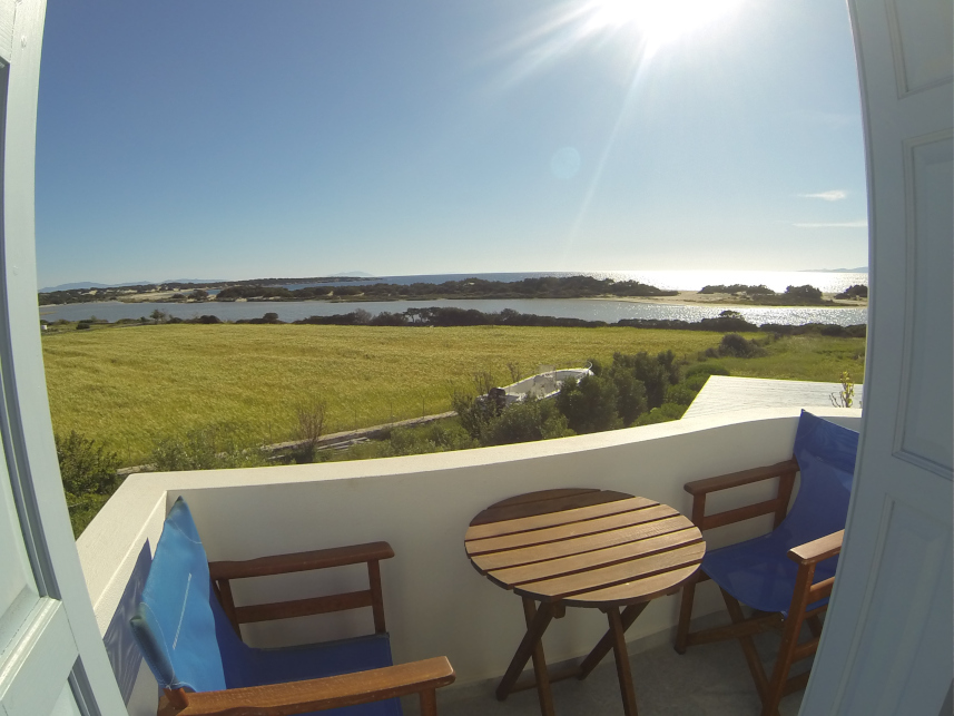 - There are 3 verandas, 2 facing the sea (west and south west) and one facing east. The two sea-facing verands offer uninterrupted and unique views of the beachfront, Paros, Ios, the sunset etc. The largest veranda has a weather proof pergola, allowing to enjoy the veranda during daytime (sun protection) or even when it is raining.
